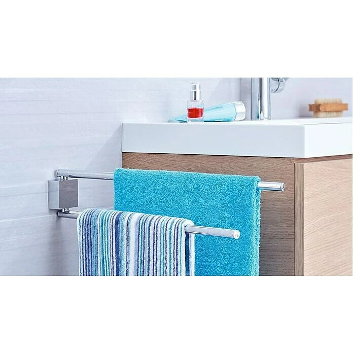 Der Handtuchhalter EK203 von tesa aus der Badserie Ekkro kann dank patentierter Befestigungstechnik leicht, bequem und ganz ohne Bohren, Lärm und Schmutz in Ihrem Bad befestigt werden. Durch ihre hochglanzverchromte Optik ist sie ein absoluter Eyecatcher in jedem Bad. Die Haftflächen müssen tragfähig, sauber, trocken, fett- und trennmittelfrei sein. Die Fläche am besten mit einem trockenen, sauberen Tuch fest abreiben. Verwenden Sie auf keinen Fall Badreiniger – diese enthalten meist Antihaftsubstanzen. Trennschichten können meist mit reinem Alkohol (Isopropanol oder Propylalkohol) aus der Apotheke entfernt werden. Bei gewachsten Natursteinen wachslösenden Reiniger verwenden.