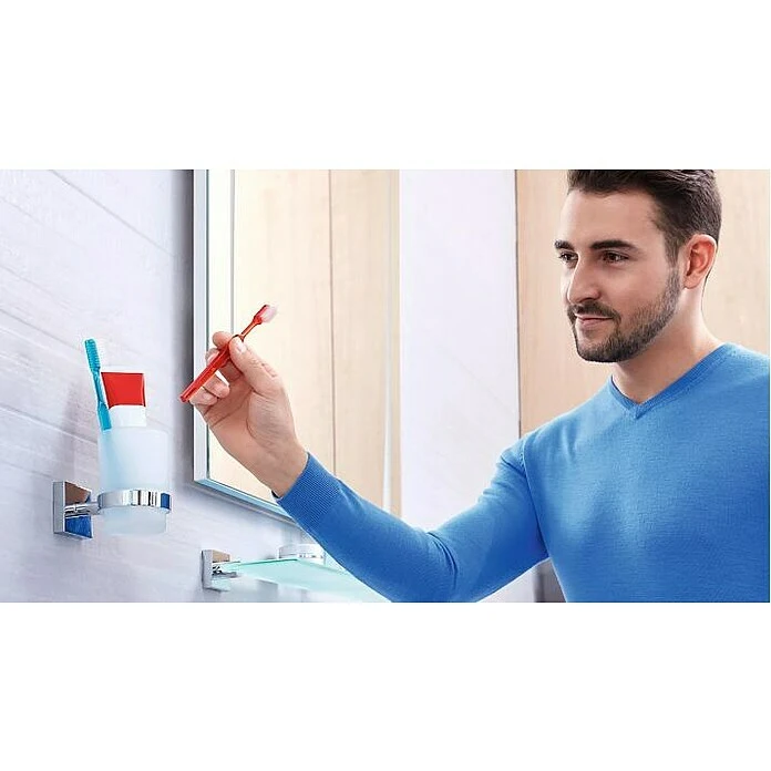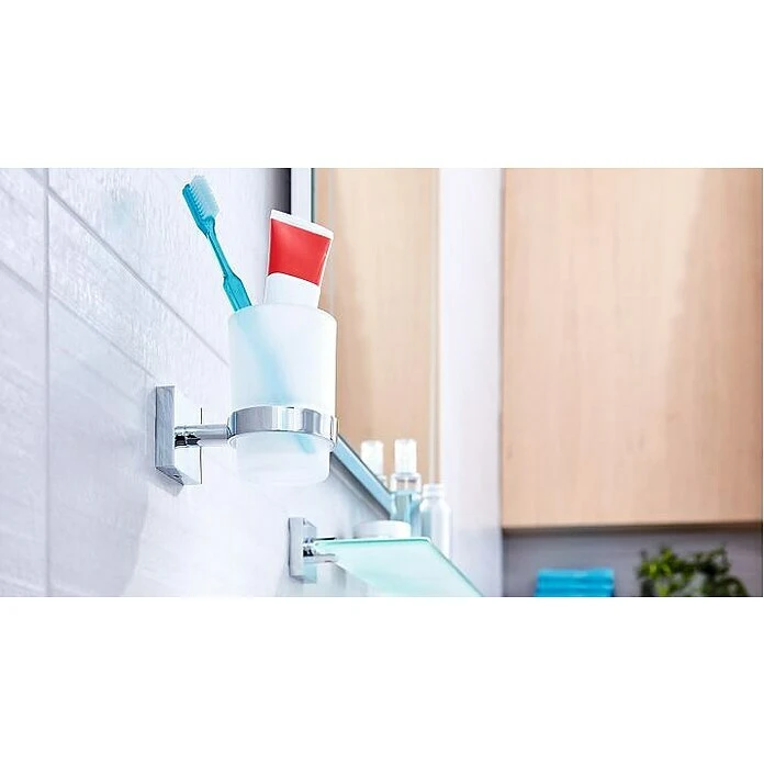 Der Mundglashalter EK145 von tesa aus der Badserie Ekkro kann dank patentierter Befestigungstechnik leicht, bequem und ganz ohne Bohren, Lärm und Schmutz in Ihrem Bad befestigt werden. Durch seine hochglanzverchromte Optik ist er ein absoluter Eyecatcher in jedem Bad. Die Haftflächen müssen tragfähig, sauber, trocken, fett- und trennmittelfrei sein. Die Fläche am besten mit einem trockenen, sauberen Tuch fest abreiben. Verwenden Sie auf keinen Fall Badreiniger – diese enthalten meist Antihaftsubstanzen. Trennschichten können meist mit reinem Alkohol (Isopropanol oder Propylalkohol) aus der Apotheke entfernt werden. Bei gewachsten Natursteinen wachslösenden Reiniger verwenden.