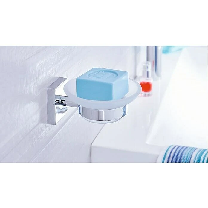 Die Seifenschale EK123 von tesa aus der Badserie Ekkro kann dank patentierter Befestigungstechnik leicht, bequem und ganz ohne Bohren, Lärm und Schmutz in Ihrem Bad befestigt werden. Durch ihre hochglanzverchromte Optik ist sie ein absoluter Eyecatcher in jedem Bad. Die Haftflächen müssen tragfähig, sauber, trocken, fett- und trennmittelfrei sein. Die Fläche am besten mit einem trockenen, sauberen Tuch fest abreiben. Verwenden Sie auf keinen Fall Badreiniger – diese enthalten meist Antihaftsubstanzen. Trennschichten können meist mit reinem Alkohol (Isopropanol oder Propylalkohol) aus der Apotheke entfernt werden. Bei gewachsten Natursteinen wachslösenden Reiniger verwenden.