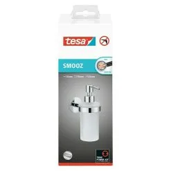 Der Seifenspender von tesa aus der Badserie Smooz kann dank patentierter Befestigungstechnik leicht, bequem und ganz ohne Bohren, Lärm und Schmutz in Ihrem Bad befestigt werden. Durch seine hochglanzverchromte Optik und dem schönen satinierten Glas ist er ein absoluter Eyecatcher in jedem Bad. Der Seifenspender kann mit weiteren Badaccessoires aus der gleichen Serie ergänzt werden für ein einheitliches Bild in Ihrem Bad. Zudem kann er rückstandslos entfernt werden und mit einem neuen Adapter wieder verwendet werden.
