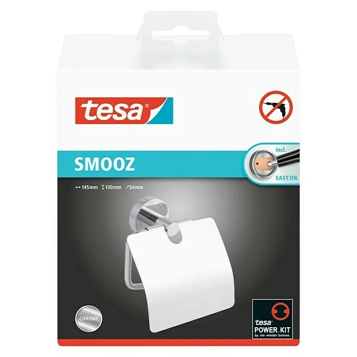 Der WC-Papierrollenhalter mit Deckel von tesa aus der Badserie Smooz kann dank patentierter Befestigungstechnik leicht, bequem und ganz ohne Bohren, Lärm und Schmutz in Ihrem Bad befestigt werden. Durch seine hochglanzverchromte Optik ist er ein absoluter Eyecatcher in jedem Bad. Der Toilettenpapierhalter kann mit weiteren Badaccessoires aus der gleichen Serie ergänzt werden für ein einheitliches Bild in Ihrem Bad.