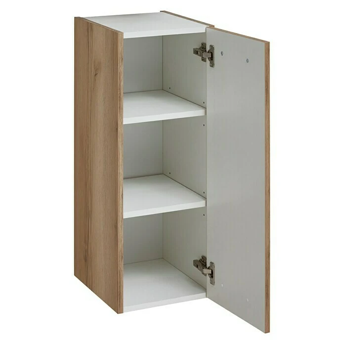 Der Unterschrank OPTIbasic in Nachbildung Wildeiche überzeugt mit seinem im Trend liegenden Industriestil. Zusammen mit den schwarzen Griffen wird der coole Look in Verbindung mit dem warmen Holzton unterstrichen. Das Badmöbel mit einer Tür und zwei Einlegeböden bietet viel Platz zum Verstauen von Badutensilien. Zusätzlich mit dem schwarzen Regalgestell mit Glasplatte kann mit einem zweiten Unterschrank ein Hochschrank 30 cm zusammengestellt werden. Der Unterschrank ist zur Wandmontage geeignet. Der Unterschrank ist zur Wandmontage geeignet. Er kann jedoch auch in Kombination mit dem schwarzmatten Möbelgestell gekauft werden. Die Möbelgestelle müssen separat dazu bestellt werden.