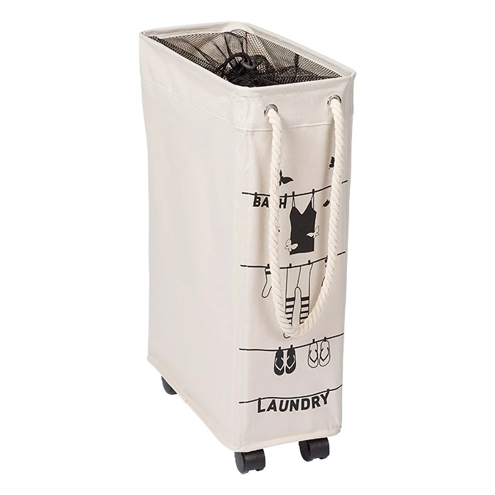 Mit dem Wäschesammler Dress von VENUS lässt sich Ihre Schmutzwäsche ordentlich verstauen und aufbewahren. Der moderne Wäschesammler verleiht dem Wohnambiente mit seinem dezenten Print-Motiv einen gemütlichen Charme. Aus Polyester gefertigt lässt sich der hochwertige Wäschekorb, dank seiner 4 Rollen und dem Tragegriff, einfach transportieren. Weiter kann der Tragegriff innen fixiert und dadurch in der Länge verstellt werden. Dies erspart das lästige Bücken beim Bewegen des Waschekorbs.