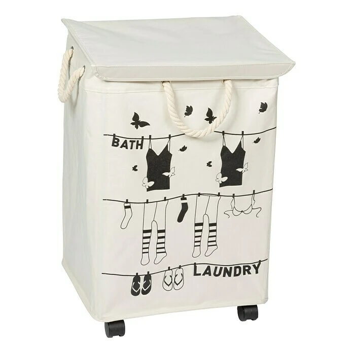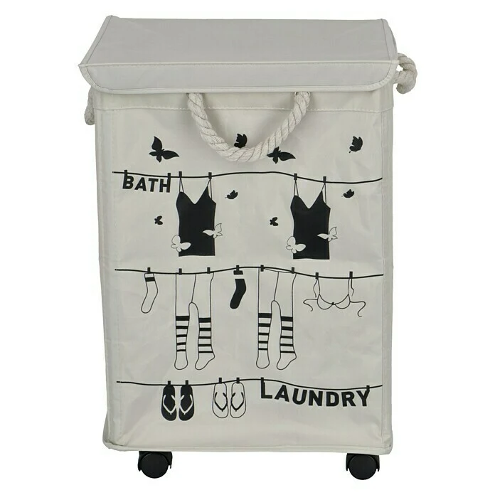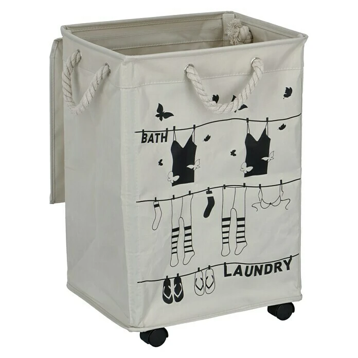 Mit dem Wäschesammler Dress von VENUS lässt sich Ihre Schmutzwäsche ordentlich verstauen und aufbewahren. Der moderne Wäschesammler verleiht dem Wohnambiente mit seinem dezenten Print-Motiv einen gemütlichen Charme. Aus Polyester gefertigt kann der hochwertige Wäschekorb, dank seiner 4 Rollen, problemlos verschoben werden oder bei Bedarf an seinen Tragegriffen ebenso einfach transportiert werden. Weiter kann der Tragegriff innen fixiert und dadurch in der Länge verstellt werden. Dies erspart das lästige Bücken beim bewegen des Waschekorbs.