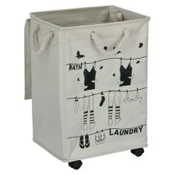 Mit dem Wäschesammler Pitar von VENUS lässt sich Ihre Schmutzwäsche ordentlich verstauen und aufbewahren. Der moderne Wäschesammler verleiht dem Wohnambiente mit seinem dezenten Print-Motiv einen gemütlichen Charme. Aus Polyester gefertigt lässt sich der hochwertige Wäschekorb, dank seiner 4 Rollen und dem Tragegriff, einfach transportieren. Weiter kann der Tragegriff innen fixiert und dadurch in der Länge verstellt werden. Dies erspart das lästige Bücken beim bewegen des Waschekorbs.