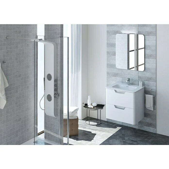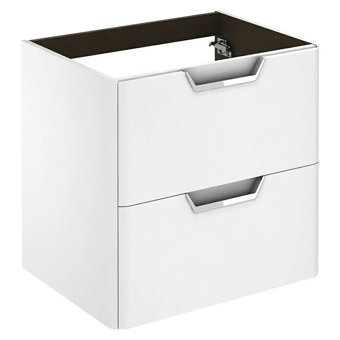 Der Waschbeckenunterschrank Beauty überzeugt durch seine schöne Formgebung mit abgerundeten Ecken. Dank kompakter Massgebung ist er sowohl für das kleine Badezimmer als auch für das Gäste WC geeignet. Der vormontierte Waschbeckenunterschrank verfügt über zwei grosszügige Auszüge mit Siphonausschnitt und Kosmetikeinsatz. Ein praktisches Detail bieten die Schliesselemente mit Einzugdämpfung, die für ein sanftes und leises Schliessen der Schubladen sorgt. Mit dem ebenfalls erhältlichen, nicht im Lieferumfang enthaltenen Waschbecken und Lichtspiegel, schaffen Sie ein harmonisches Gesamtbild.