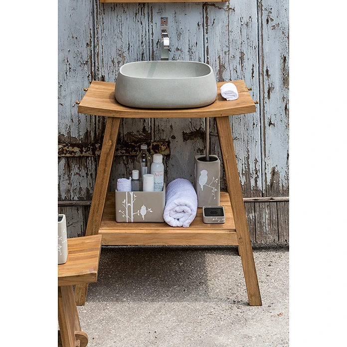 Die urbane freistehende Waschtisch-Konsole Zen XL wurde handwerklich produziert ohne Schrauben und Nägel. Die Konsole wird aus recyceltem Teak-Holz hergestellt und somit ist jedes Stück ein Unikat. Die vier an der Seite angebrachten Handtuchhaken sorgen dafür, dass Ihre Handtücher griffbereit zur Stelle sind. Die Ablage im unteren Bereich bietet genügend Platz für die wichtigsten Badutensilien.