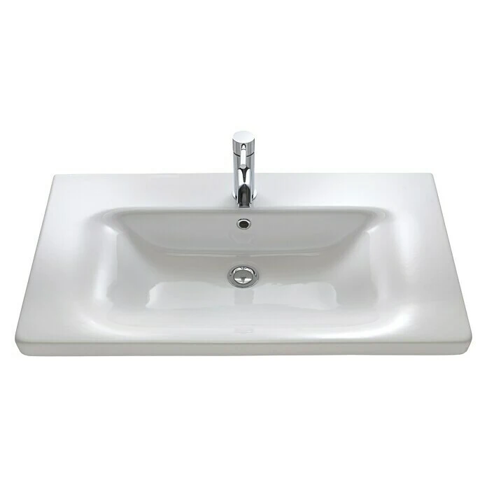 Der zeitlos schöne Waschtisch 80 cm OPTIbasic aus weisser Keramik lässt sich ideal mit dem passenden Waschtischunterschrank aus dieser Serie kombinieren. Er ist mit einem Überlauf und einem Hahnloch ausgestattet und ist dank der Sanitärkeramik sehr pflegeleicht.