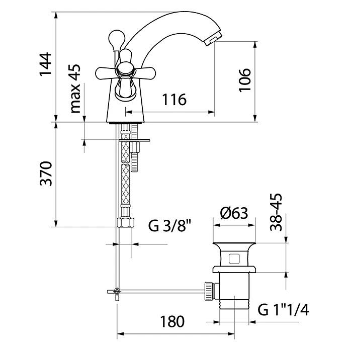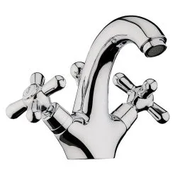 Der Waschtischmischer Retro von WEBERT im nostalgischen Stil, ist ein absoluter Blickfang in Ihrem Badezimmer oder Gästebad. Die Bedienung ist durch die zwei klassischen Kreuzgriffe ganz einfach. Zudem ist der Waschtischmischer Retro mit einer Exzentergarnitur ausgestattet. Mit der hochwertigen Verchromung ist der Mischer einfach zu reinigen und langlebig. Zudem lässt sich die Armatur durch die flexiblen Anschlussschläuche einfach montieren.