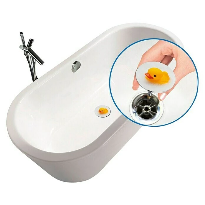 Mit dem Badewannenstöpsel Pluggy XXL Duck von WENKO kann der oft unschöne Abflussrand völlig zu verdecken. Somit werden Abnutzungserscheinungen einfach verdeckt und der Abfluss erscheint in neuem Glanz. Die Badewannenstöpsel sind in der Höhe verstellbar und können so individuell angepasst werden. Die Motive sind mit Kunstharz überzogen und sind gegen handelsübliche Reinigungsmittel und Öle resistent.